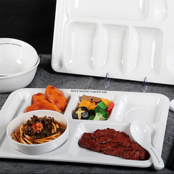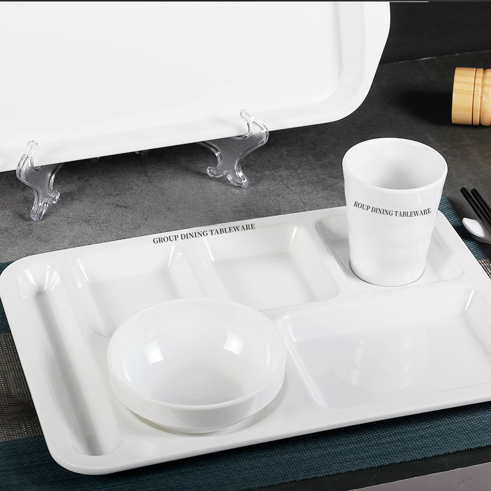 Customized Size Unbreakable Modern Plastic Dinner Plates Eco-Friendly Melamine Trays Whitetd Compartment Sustainable Polished