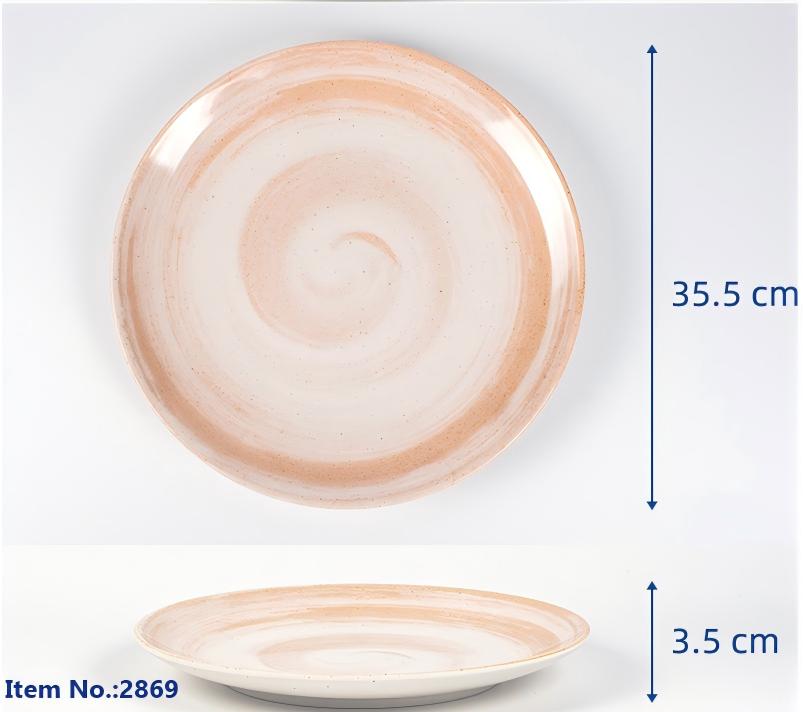 Fired at high temperatures, ceramic colors can change and are difficult to keep vibrant. Decorative effect is slightly inferior compared to melamine tableware.