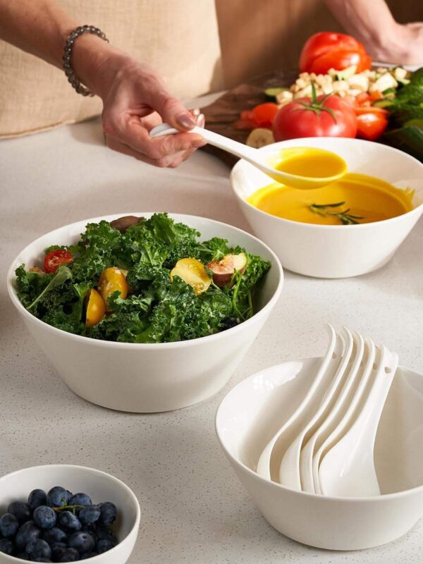 • Moderate Temperature: Melamine tableware remains at a moderate temperature even with hot contents, won’t burn hands, is safer to use, and suitable for the whole family.
