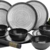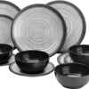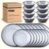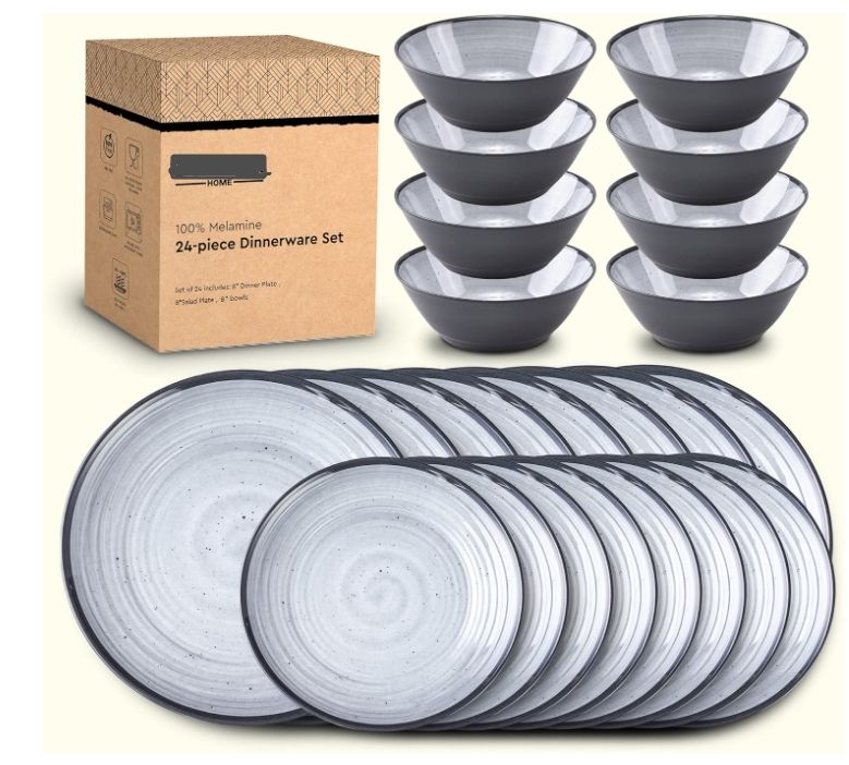 Lightweight Solid Pattern 24PCS Melamine Dinnerware Sets for 8 Outdoor Plates and Bowls Sets Plastic Modern (cool Gray) Wedding
