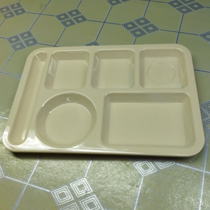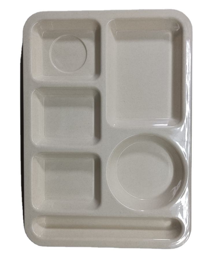 Unbreakable Fast Food Melamine Plate 6 Compartment Divided Bamboo School Canteen Ready to Ship