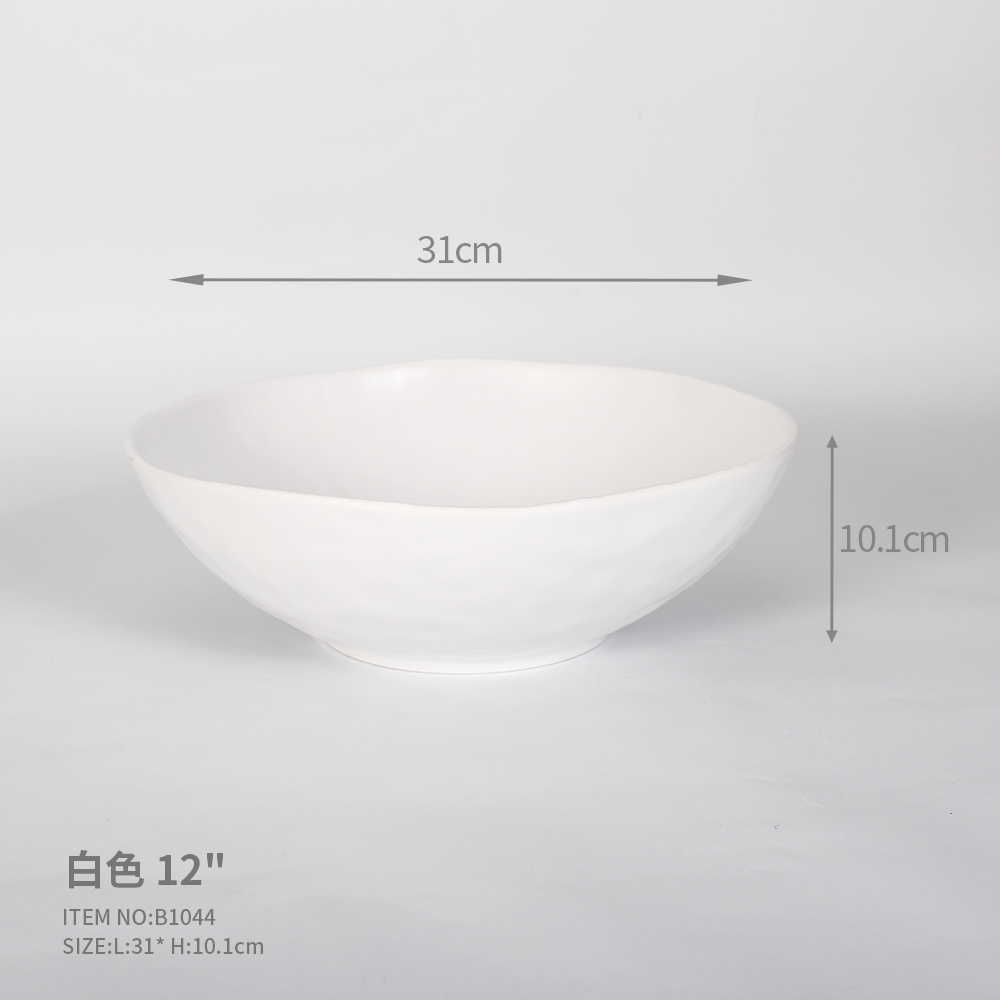 White Irregular Shaped 12″ Textured Big Size Salad Bowl